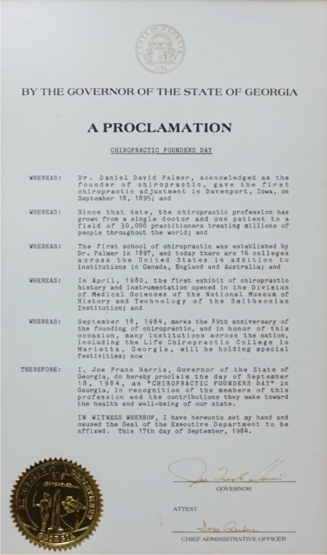 Life Chiropractic College receives permission from the Georgia Board of Education to confer the Doctorate of Chiropractic Degree.